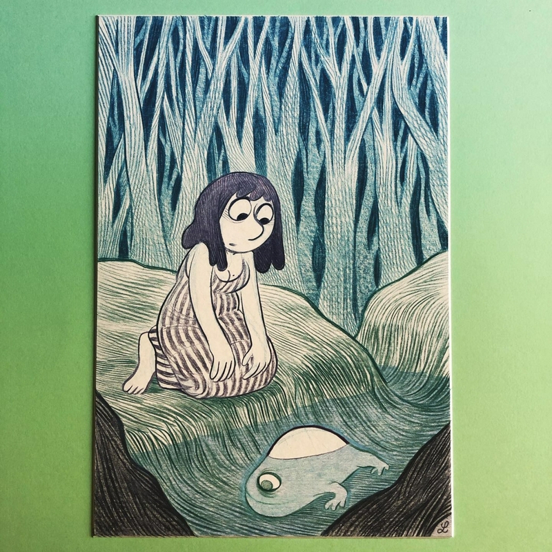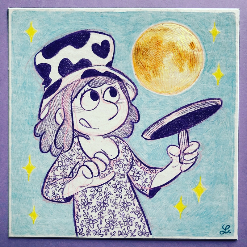 Moi aussi, j'ai commencé à voir la crêpe comme la lune et j'ai été surpris par l'angle entre la main, le manche et le fond de la poêle. Très sympas tous ces dessins en tout cas, vive le InkNovember décalé, merci Laurel !