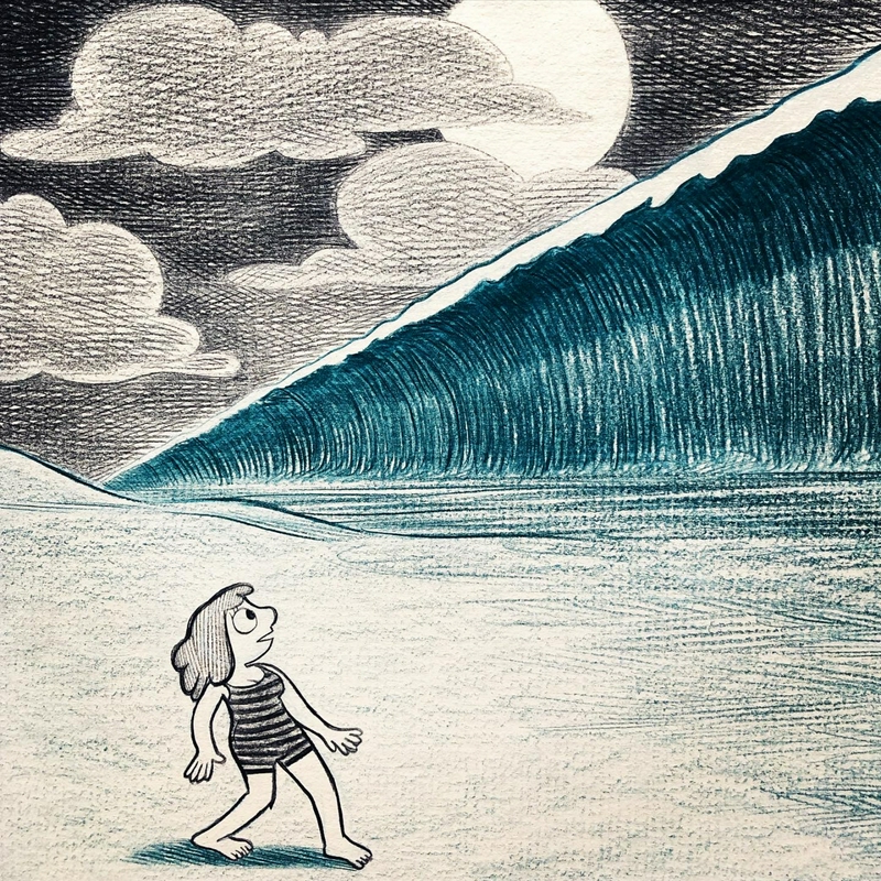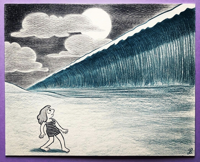 RépondreEt celui de la vague géante correspond à un rêve que je fais souvent, et ce rêve ressemble tellement à ce dessin ! Ça fait tout drôle
