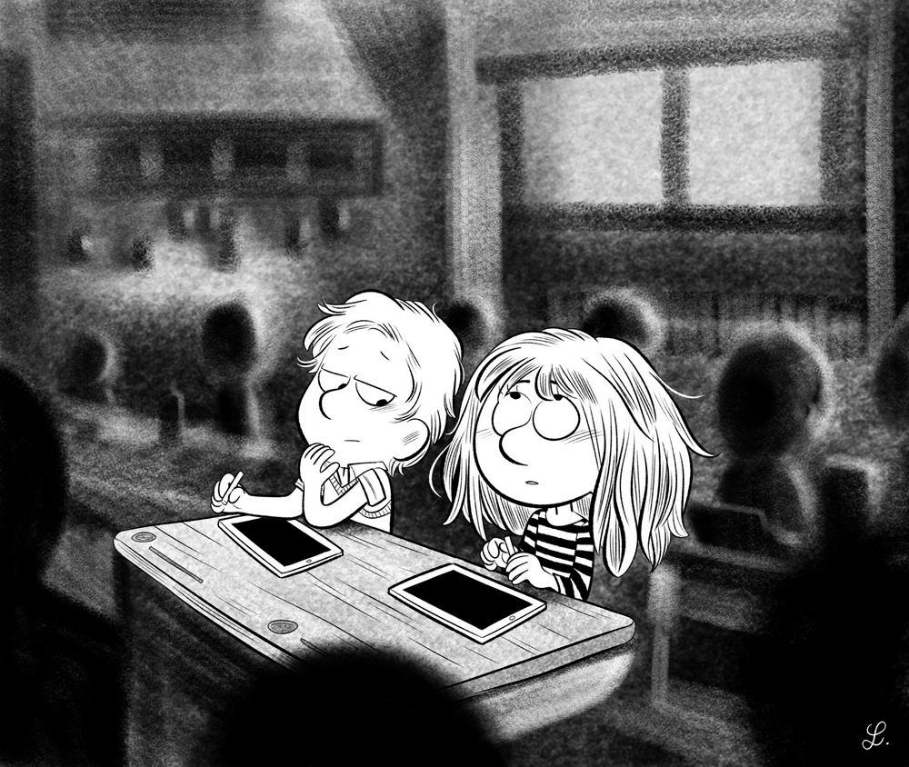 Puisque ce sont des iPad, j'aurais plus vu des Apple Pencil au lieu de craie.