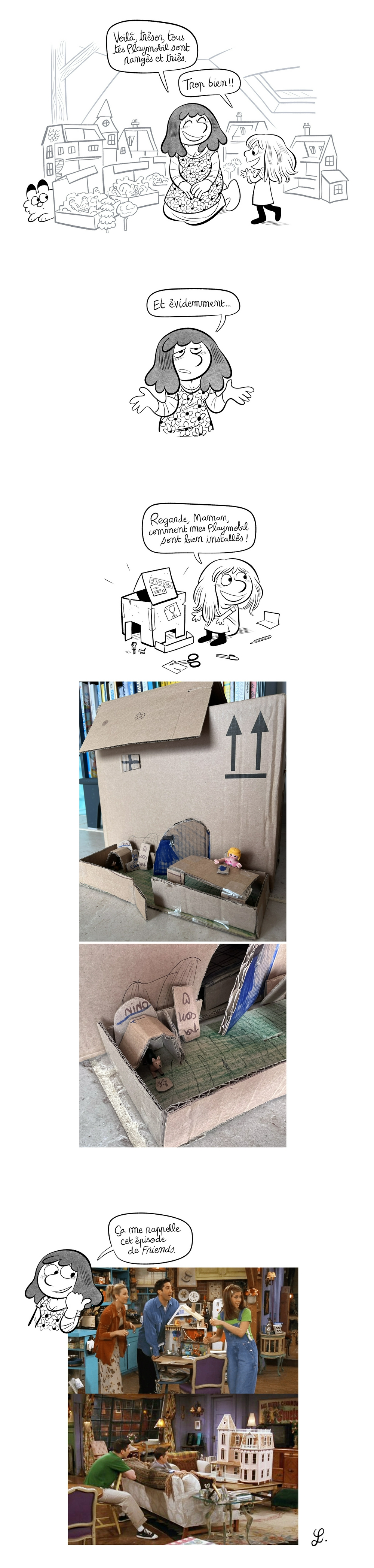 Oh c'était pas un reproche, mais le dessin m'a impressionnée ! Chez moi on est plutôt envahi par les camions, mais la maison playmobil a son petit succès quand même :)