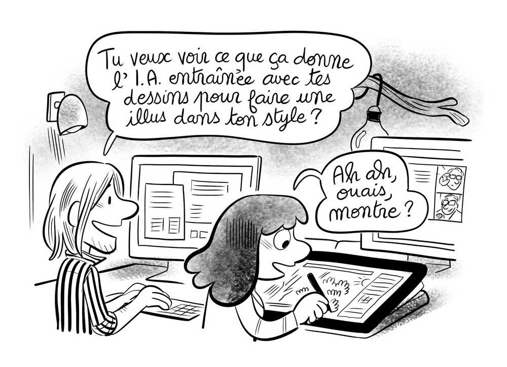Je ne suis pas certain que Léonard de Vinci ait peint la Joconde seul. Il a du avoir des apprentis qui ont eux aussi bossé sur le tableau. Bon ben là ton apprenti, c'est l'IA (qui n'a d'intelligence que le nom hein). Franchement même si je peux comprendre les peurs, ta valeur ajoutée n'est pas que de tenir un crayon et de savoir le bouger d'une manière à peu près coordonnée sur du papier.