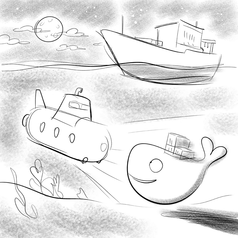 Le nom du navire (absent du crayonné) vient de toi ou ce fut une demande du client ?