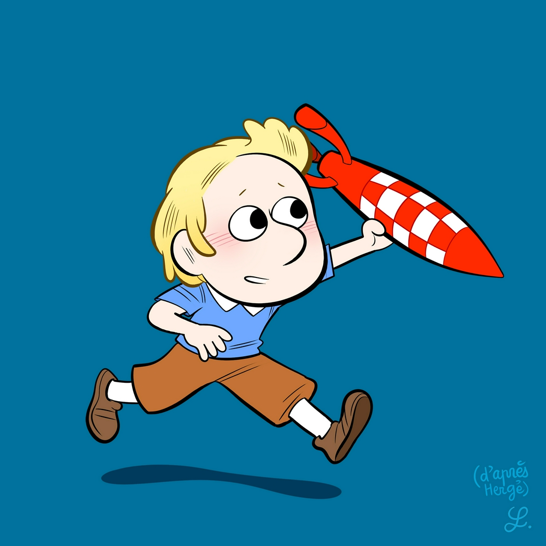 Vous avez écrit "Hergé" et dessiné une fusée rouge. Moulinsard vous réclame 10 millions d'euros, un rein, et votre dernier né. :)
