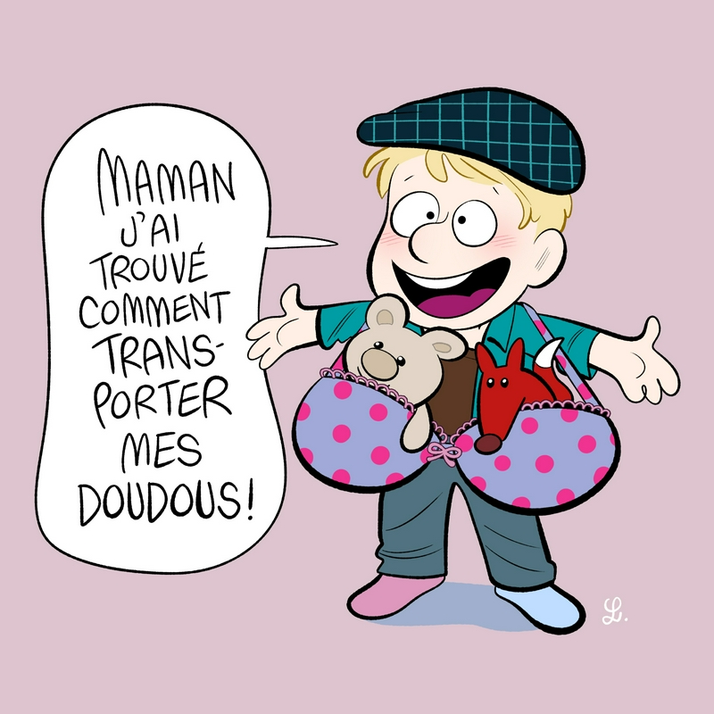 "Ne rien laisser à leur portée !" : tu veux dire que tu ne veux pas qu'il porte ses doudous ?