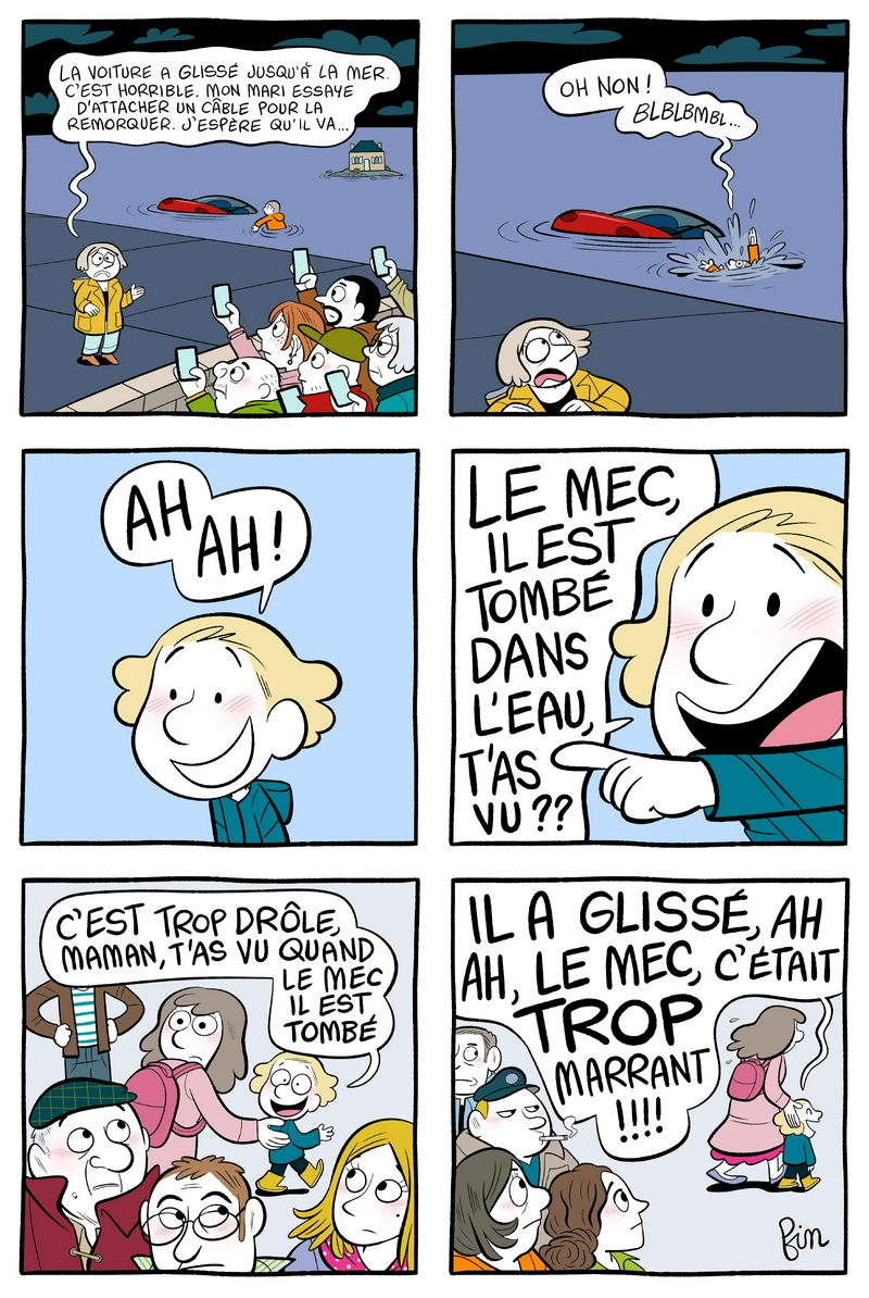"Les gens qui prennent des photos / vidéos ça me choque plus que le gamin qui rigole !" +1 A cet âge là on ne se rend pas toujours compte. Les adultes par contre n'ont aucune excuse.
