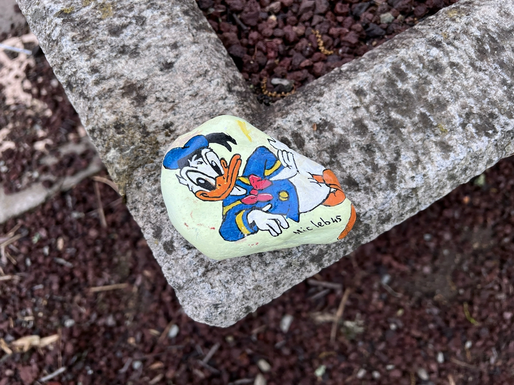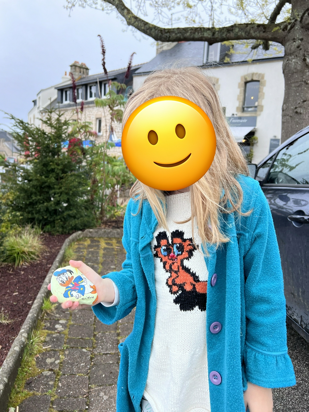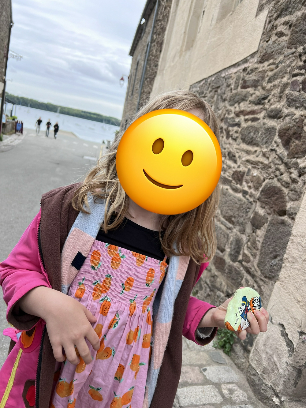Lors d'une balade dans un village de Bretagne, pendant les vacances scolaires, nous sommes tombés sur un galet peint.