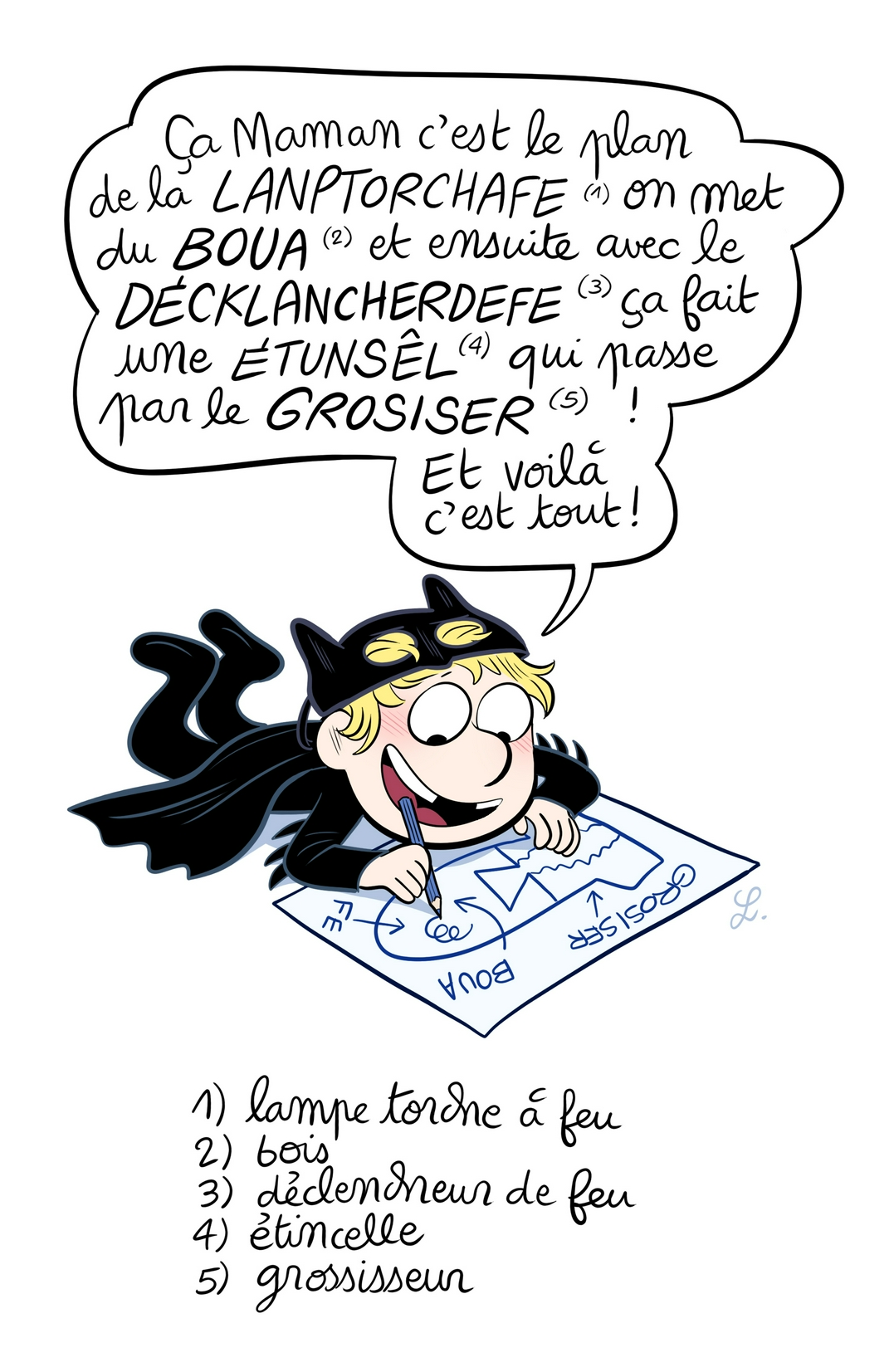 Huhu :) c'est mignon et plutôt positif, il ose écrire tout seul, le mien en CP aussi il veut pas écrire un mot sans demander comment ça s'écrit (chouette aussi, mais différent rendu d'expression)