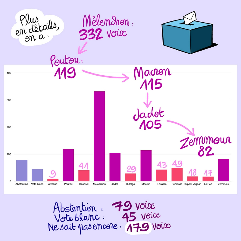 Répondre"jean Luc Melenchon" arrive en tête avec 332 voix.