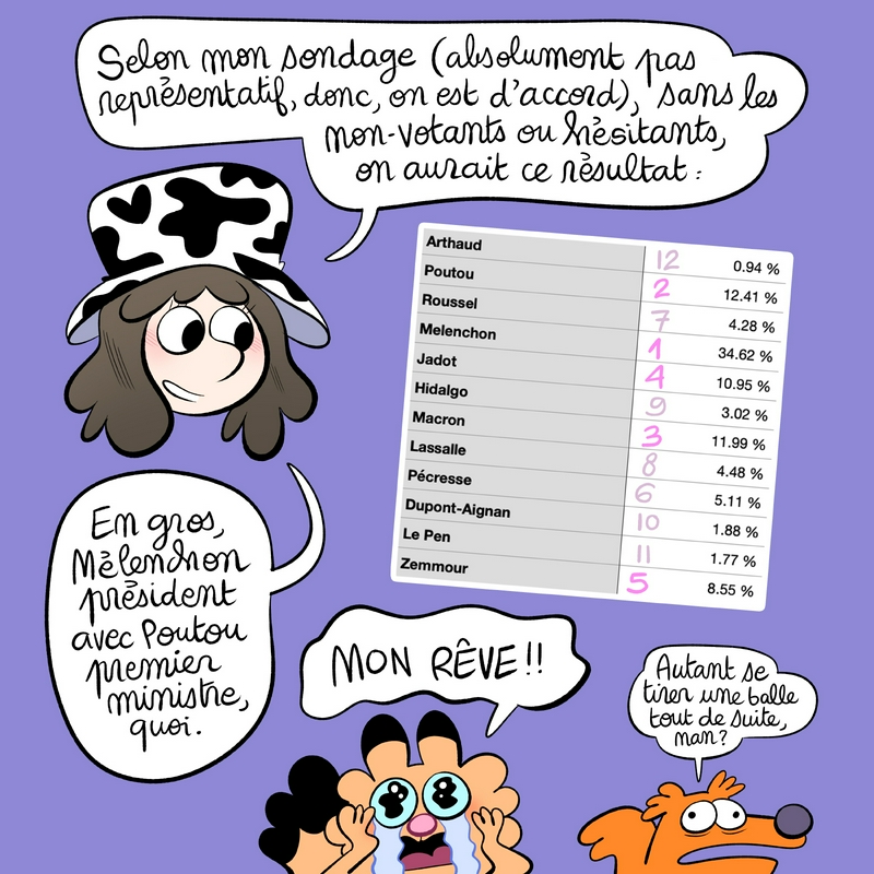 Et n'ayant pas pu participer parce qu'absente d'internet pendant ces quelques jours, tu peux ajouter une voix pour Mélenchon.